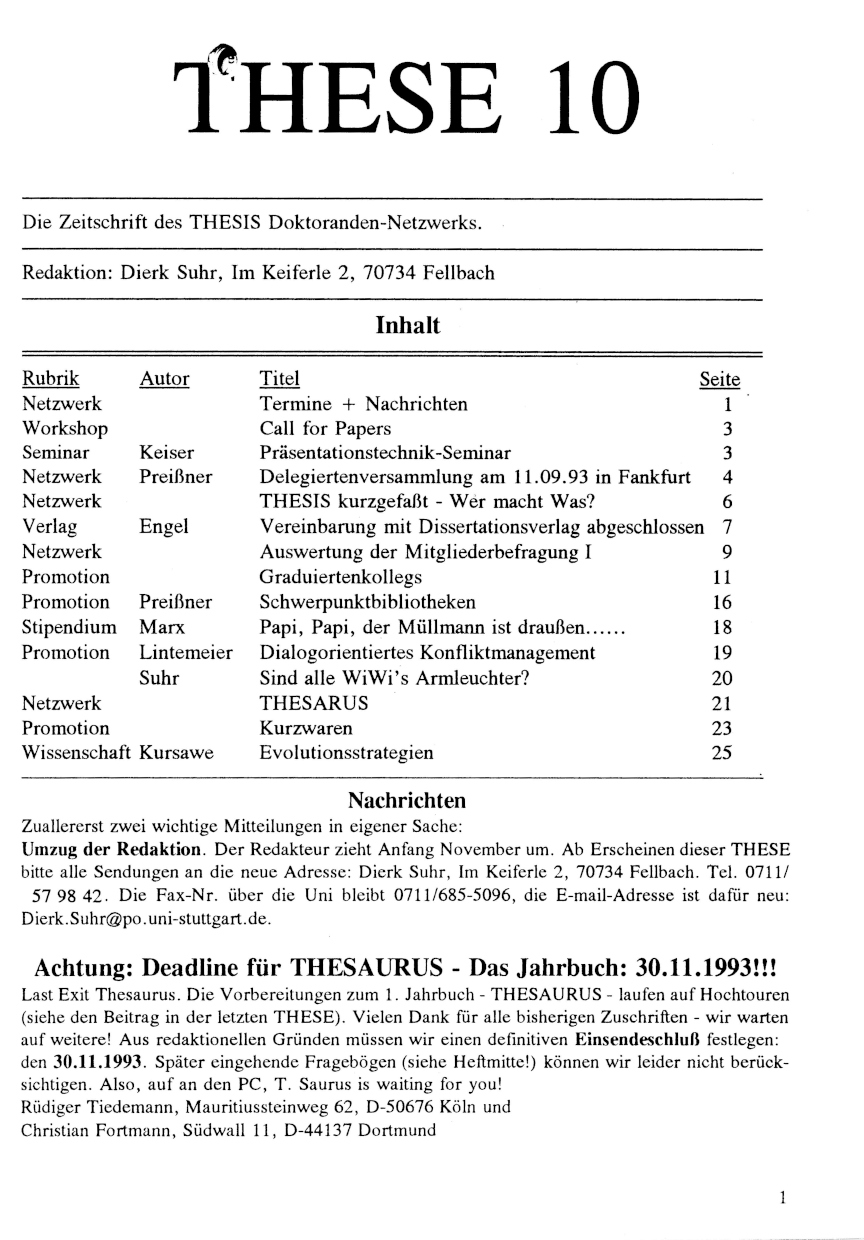 THESE — die Mitgliederzeitschrift